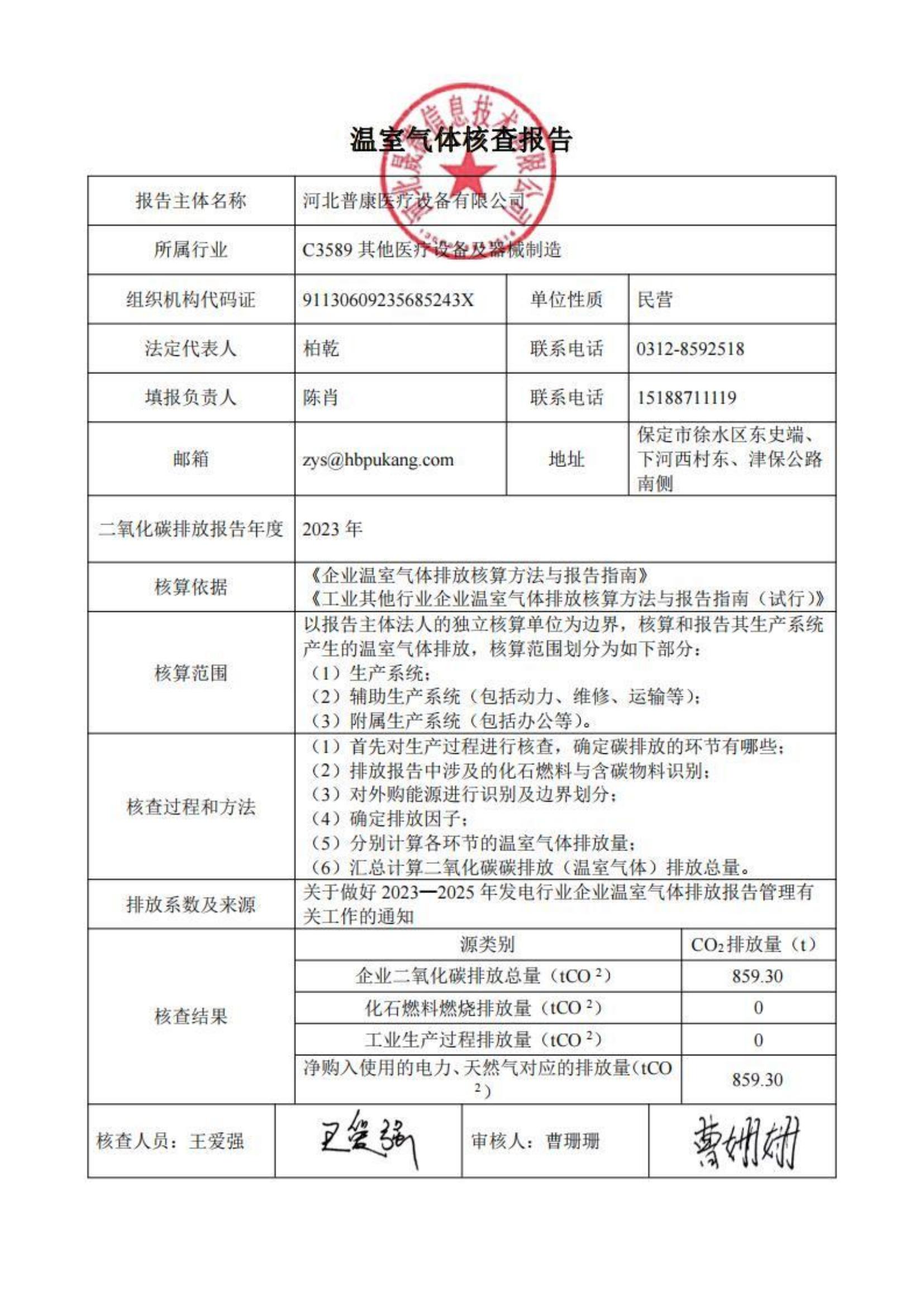 2023年溫室氣體排放核查公示